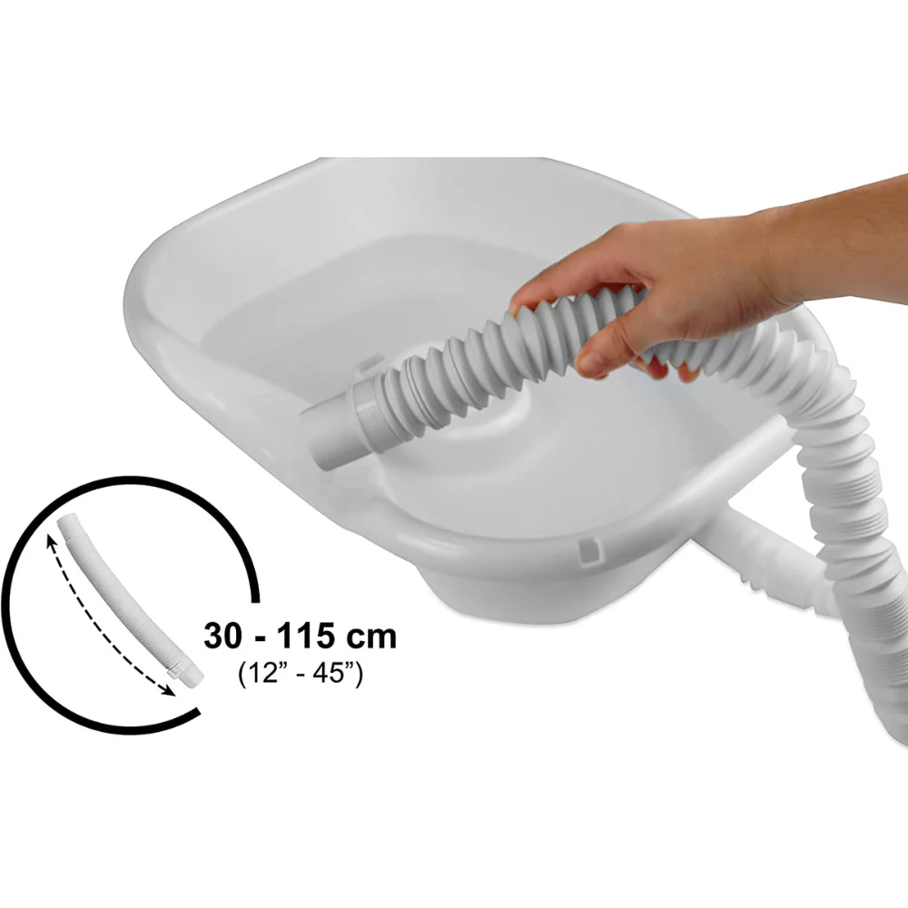 Simplifiez les soins capillaires à domicile avec ce lavabo portable rigide, spécialement conçu pour les personnes âgées ou à mobilité réduite. Finis les inconforts liés au lavage de cheveux au-dessus d’un évier classique ou d’une baignoire. Ce bac offre une solution pratique et ergonomique pour un lavage de tête en position assise, tout en gardant l’utilisateur parfaitement au sec.