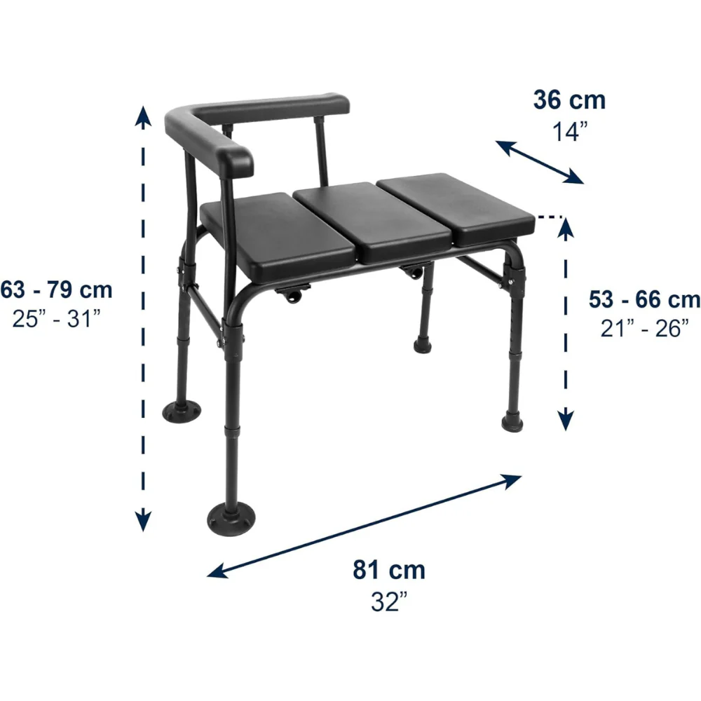 Cette modèle se distingue des bancs standards par son assise rembourrée, qui offre un confort supérieur et évite les sensations de froid ou de dureté du plastique rigide. Il est spécifiquement conçu pour les personnes ayant une peau fragile ou des douleurs à l’assise.