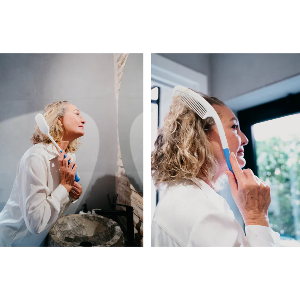 Ce pack d’aides à l’hygiène est une solution pratique et efficace pour retrouver de l’autonomie dans les gestes quotidiens comme se coiffer. Les manches longs et courbés sont l’atout principal de ces ustensiles, permettant d’atteindre facilement toute la chevelure sans avoir à lever excessivement le bras ou l’épaule.