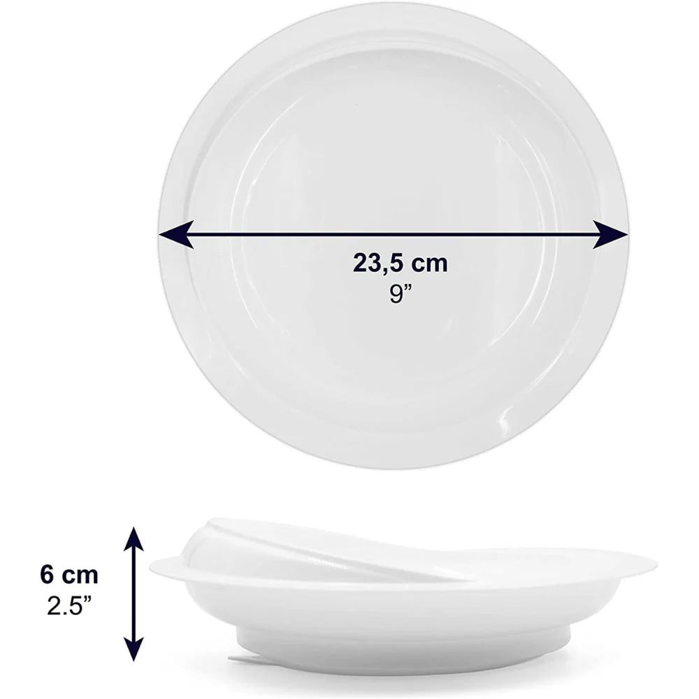 Fabriquée en plastique durable et sûr (sans BPA), cette assiette est une aide technique inestimable pour les repas quotidiens, apportant sécurité, confiance et dignité à l’utilisateur.