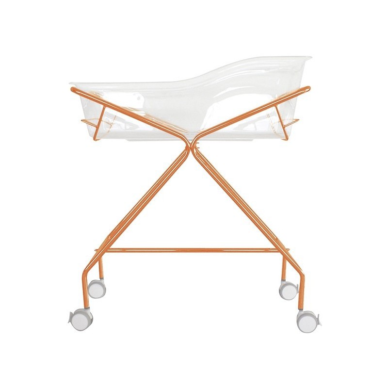 Le berceau en X est l’équipement standard des services de néonatalité et de maternité. Sa structure croisée permet à la nacelle de s’approcher au plus près du lit de la mère, facilitant ainsi les soins et le contact visuel.