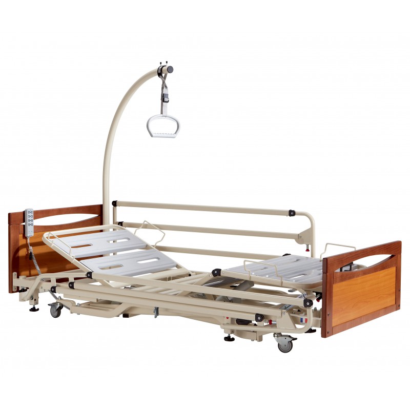 Lit ultra-bas spécialement conçu pour les personnes désorientées (hauteur mini. 21 cm). Design attractif avec châssis cintré permettant le passage d’un soulève malade ou d’une table de lit.