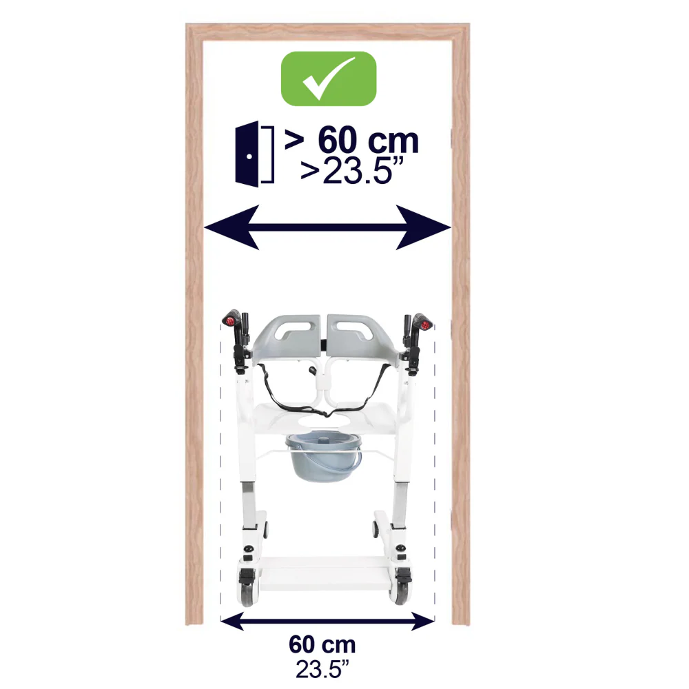 Optimisez les transferts et le quotidien des personnes à mobilité réduite avec la chaise de transfert, une solution polyvalente alliant aide au déplacement et fonction WC.