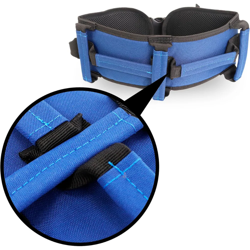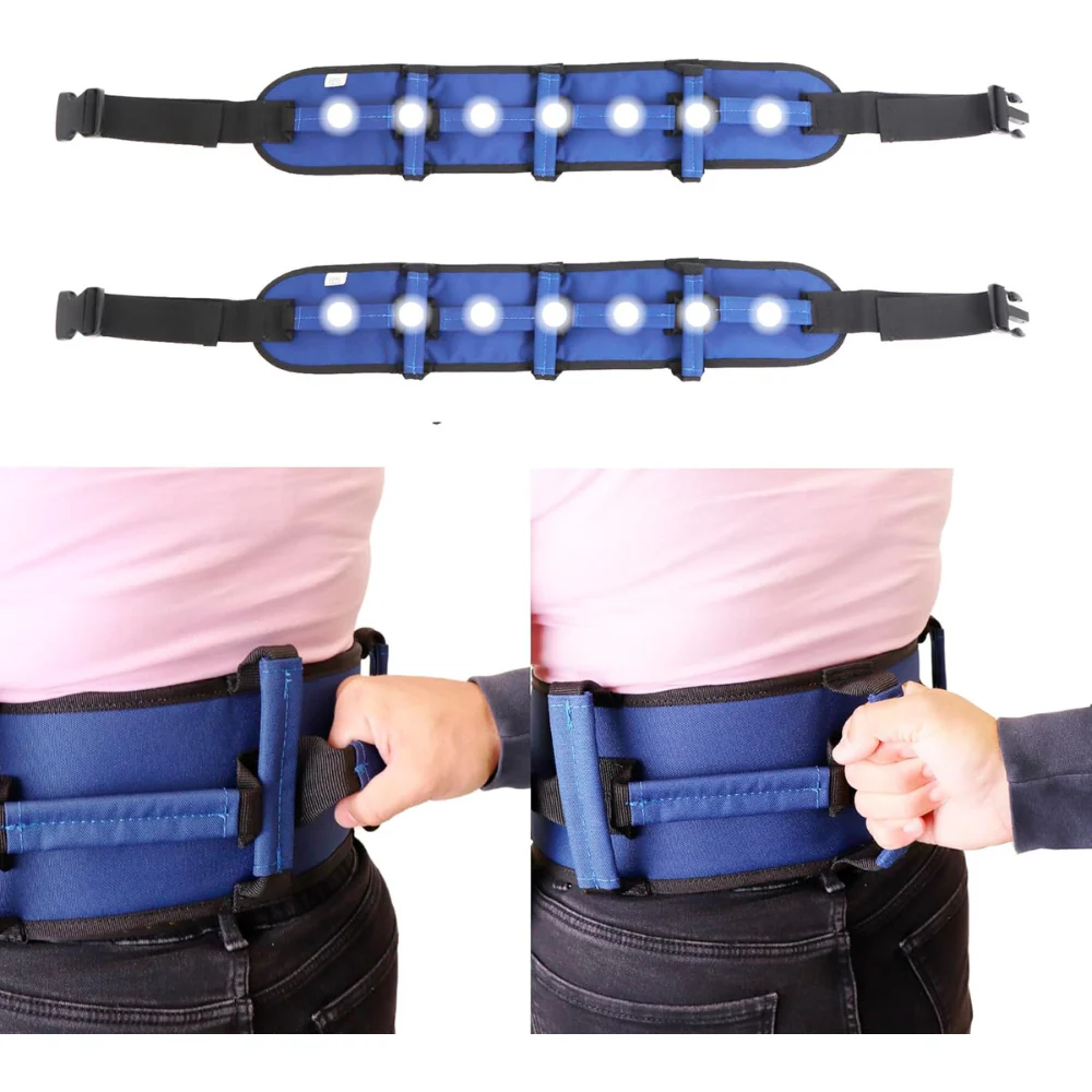 Ce pack de deux ceintures est conçu pour la sécurité et l’ergonomie, doté de sept poignées renforcées (verticales et horizontales) offrant une prise ferme et confortable sous tous les angles. Idéale pour aider à se lever du lit ou d’un fauteuil roulant, ou pour des transferts sur de courtes distances, elle réduit considérablement l’effort physique nécessaire pour le soignant.