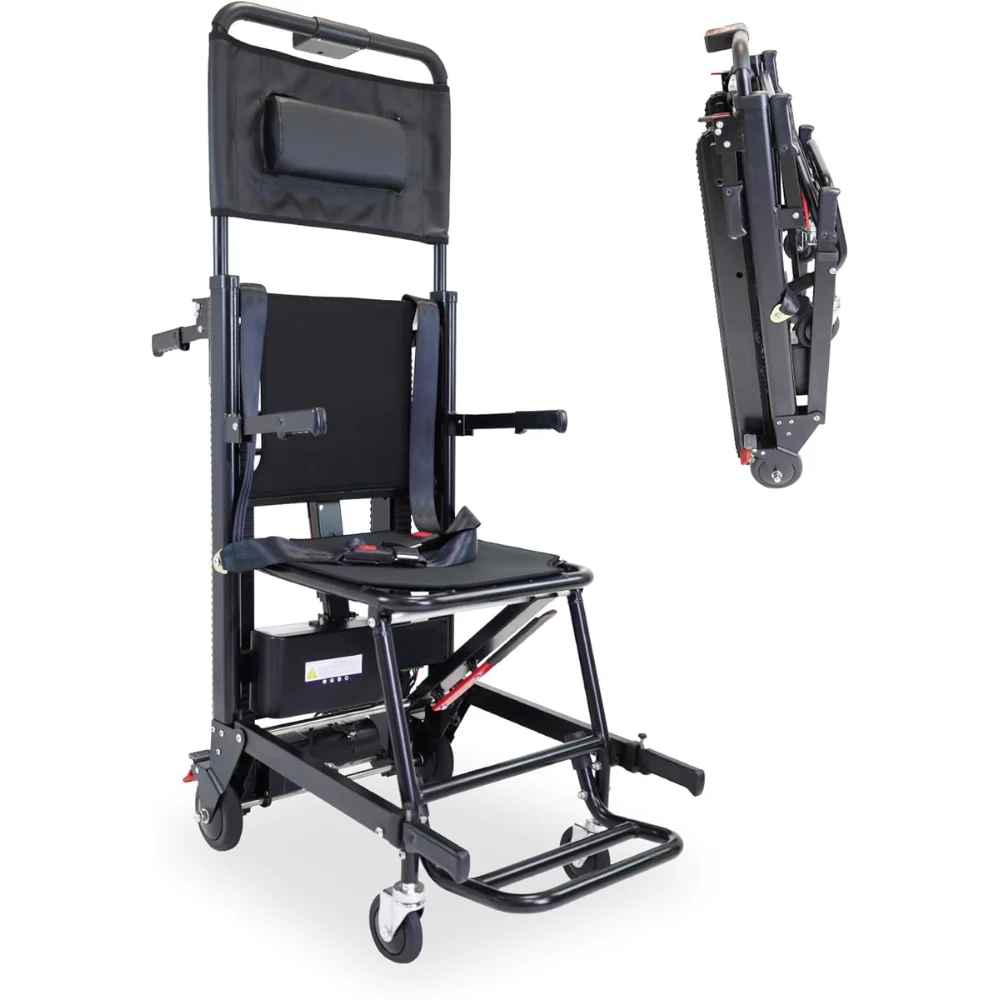 Cet appareil électrique utilise un système de chenilles motorisées robustes qui se fixent aux escaliers pour un mouvement fluide et sécurisé, éliminant l’effort physique de l’aidant. Fabriqué en acier et aluminium durables, il supporte jusqu’à 160 kg tout en restant suffisamment léger et pliable pour un transport et un stockage aisés.