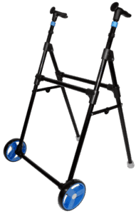 · Il est possible d’y adapter, en accessoire, des roues arrière avec frein par pression. Ces roues apportent de la mobilité et, lorsque l’utilisateur s’appuie sur le déambulateur, elles le freinent, garantissant une sécurité maximale.