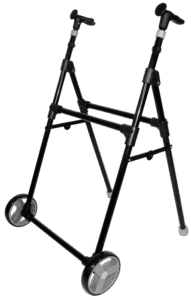 · Il est possible d’y adapter, en accessoire, des roues arrière avec frein par pression. Ces roues apportent de la mobilité et, lorsque l’utilisateur s’appuie sur le déambulateur, elles le freinent, garantissant une sécurité maximale.