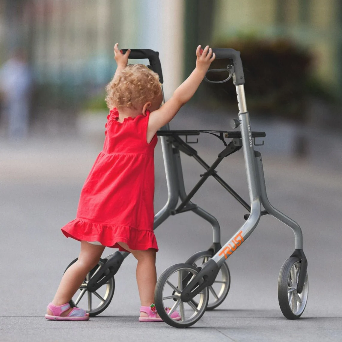 Belles et élégantes,les poignées en caoutchouc offrent une prise optimale qui ménage vos mains. Le déambulateur ne pèse que 5,4 kg, ce qui en fait l’un des déambulateurs en aluminium les plus légers au monde. Le déambulateur se replie facilement et tient deboutdebout tout seul une fois replié. Let’s Move a été instantanément un succès dans le monde entier.