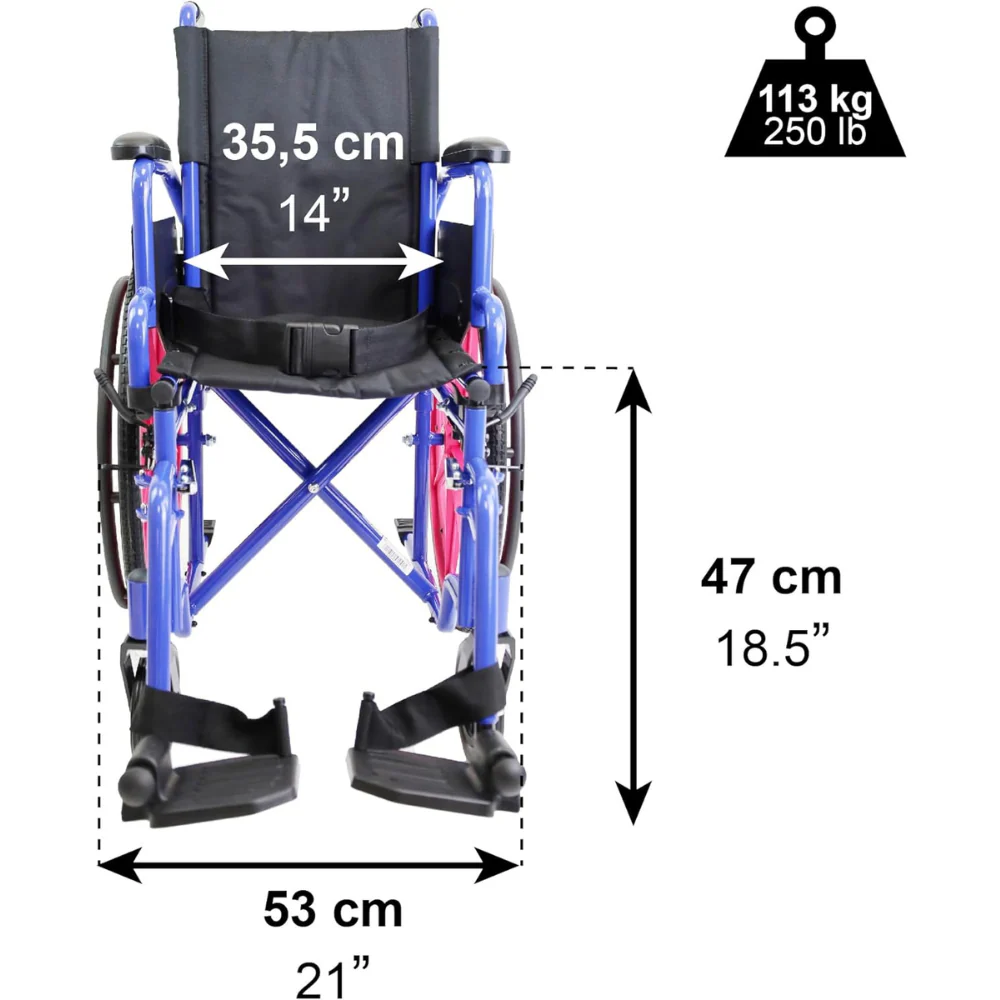 Le fauteuil roulant Kid’s Freedom Rose est une solution de mobilité spécialement conçue pour les enfants actifs, avec une touche de style unique grâce à sa finition rose attrayante. Ce modèle autopropulsable est équipé de grandes roues arrière qui permettent aux jeunes utilisateurs de gagner en indépendance et de se déplacer seuls, que ce soit à l’école, à la maison ou lors des activités extérieures. Sa conception met l’accent sur la légèreté pour faciliter la manipulation par l’enfant ou les parents. La structure est pliable, rendant le fauteuil facile à transporter en voiture et à ranger discrètement. Le PEPE P10035 allie sécurité, robustesse adaptée, fonctionnalité et un design ludique pour encourager l’autonomie de l’enfant dans ses déplacements quotidiens.